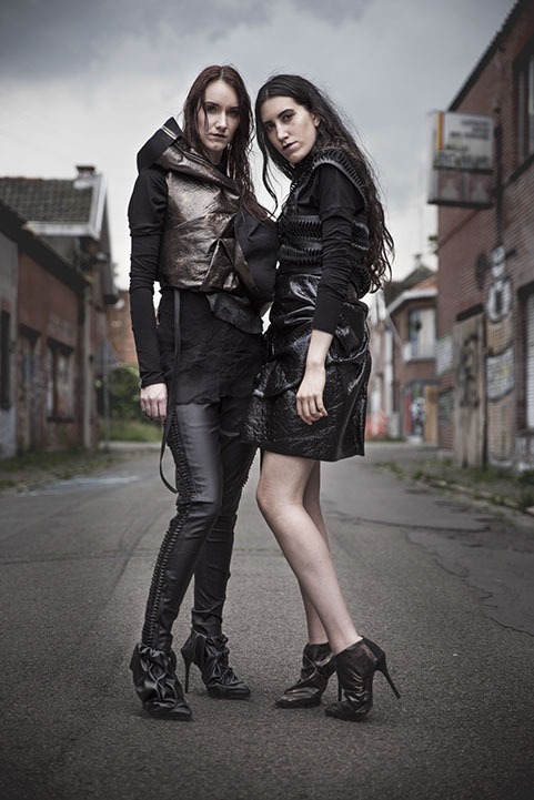 Ik ben naar het dorp geweest om de sfeer te kunnen voelen, zien, horen, ruiken en proeven. De sfeer die er hangt is moeilijk te beschrijven: het is een soort rust, straten zijn verlaten en de meeste huizen staan leeg, maar je voelt de strijd van de bewoners. Met dit gegeven en alle foto`s die ik heb gemaakt, kwam ik erachter dat we ook hier te maken hebben met een soort wegwerpmaatschappij weliswaar in een andere vorm waarbij de mensen in eerste opzicht het slachtoffer zijn. Wat dit gegeven mooi weergeeft is het verdraaide, gedeukte blikje wat ik overal tegenkwam in het dorp. Gebruikt en argeloos weggegooid. Als je het nader bekijkt, is het blikje een industrieel perfecte cilinder. Wat door een deuk meteen imperfect is. Wat ook gebeurt bij kleding, als er een stiksel loslaat kan het weg, bij veel mensen. Als je naar Doel kijkt is alles daar bijna imperfect. Het is of gesloopt door vandalisme of de overheid. Bespoten door graffitispuiters of buurtbewoners. En dat alles is overgenomen door de natuur, die met schimmels en onkruid alles overneemt. Ik vind deze imperfectie mooi want er zit een verhaal achter. Voor mijn collectie betekent het dat het zal verhouden tot mijn drie D`s: dreigend, dramatisch en doembeeld. Deze maken samen het geheel onheilspellend activistisch maken. Mijn statement voor de collectie is dat we onze kleding niet zo snel moeten afdanken en er nog zeker een extra keer naar moeten kijken voor we het echt weg doen. Met dank aan: